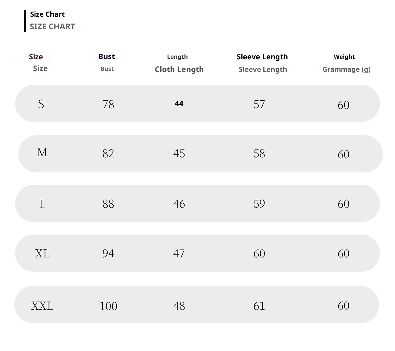 Size: S, M, L, XL, XXL